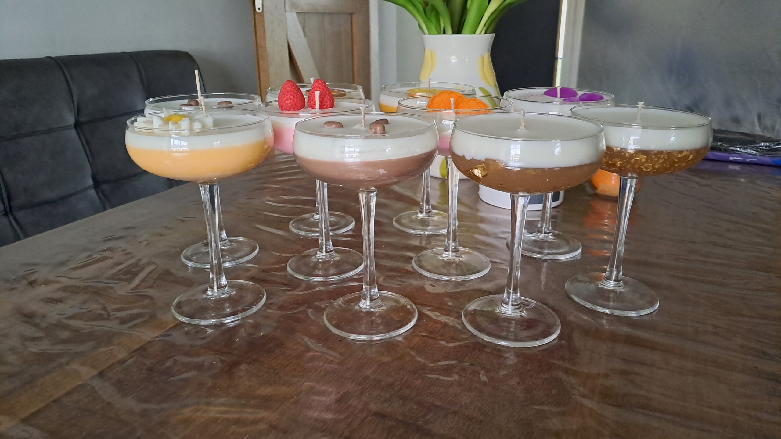 Verschillende soorten handgemaakte Kaarsen, kandelaars en onderzetters in Friesland.