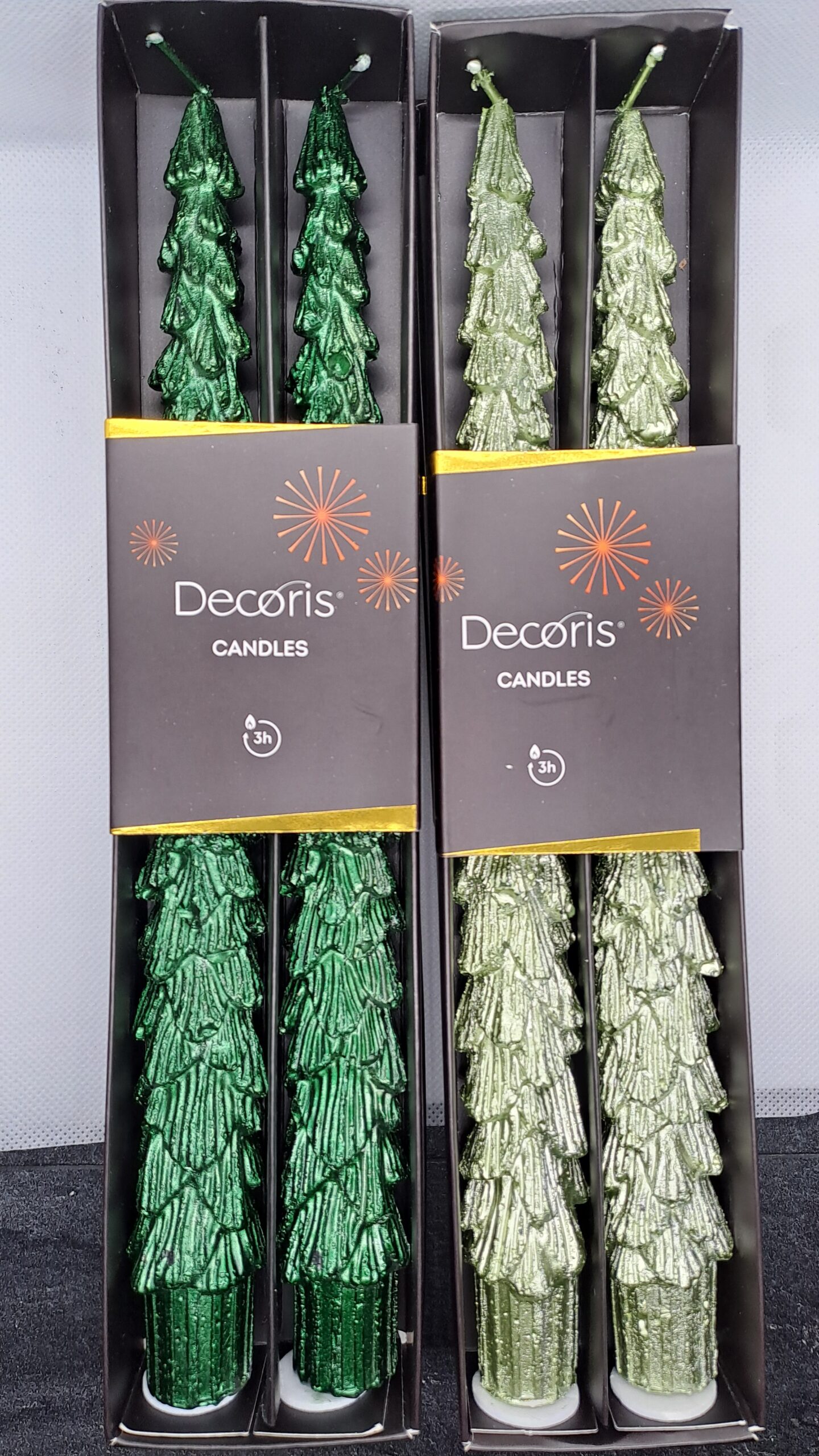 Breng direct warmte en gezelligheid in huis met deze set van 2 kerstboom dinerkaarsen in dennengroen. Dankzij hun klassieke tint, glitterafwerking en groene was zijn ze een echte blikvanger op elke tafelddecoratie.